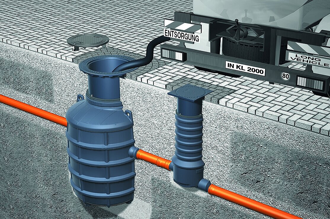 Der Fettabscheider EasyClean ground Standard ist die Basisversion der EasyClean ground-Reihe. Zum Entleeren und Reinigen müssen die geruchsdichten Deckelhauben des Fettabscheiders geöffnet werden. Das Absaugen und Spülen des Fettabscheiders erfolgt manuell. Gereinigt wird vorzugsweise mit warmem Wasser über die Wartungsöffnungen.