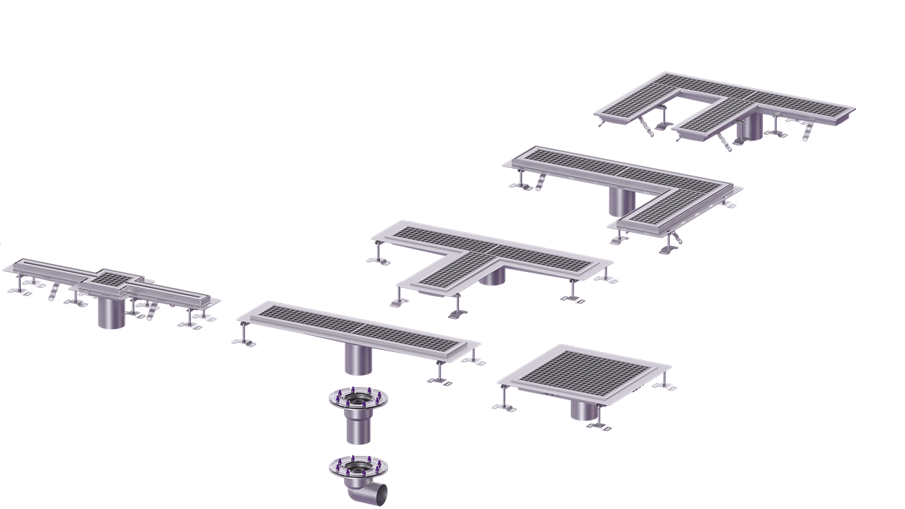 Für alle Sanierungsabläufe besteht die Möglichkeit, auch Roste zu verwenden, welche unter anderem geeignet sind für den Barfußbereich. Dies erweitert den Anwendungsbereich der Sanierungsabläufe auch für den Schwimmbadbereich.
