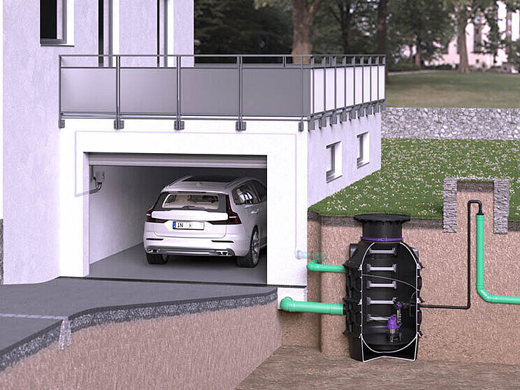 Eine Pumpstation wird außerhalb des Gebäudes installiert. Auf diese Weise wird wertvolle Nutzfläche frei, die ansonsten von einer Hebeanlage beansprucht worden wäre.